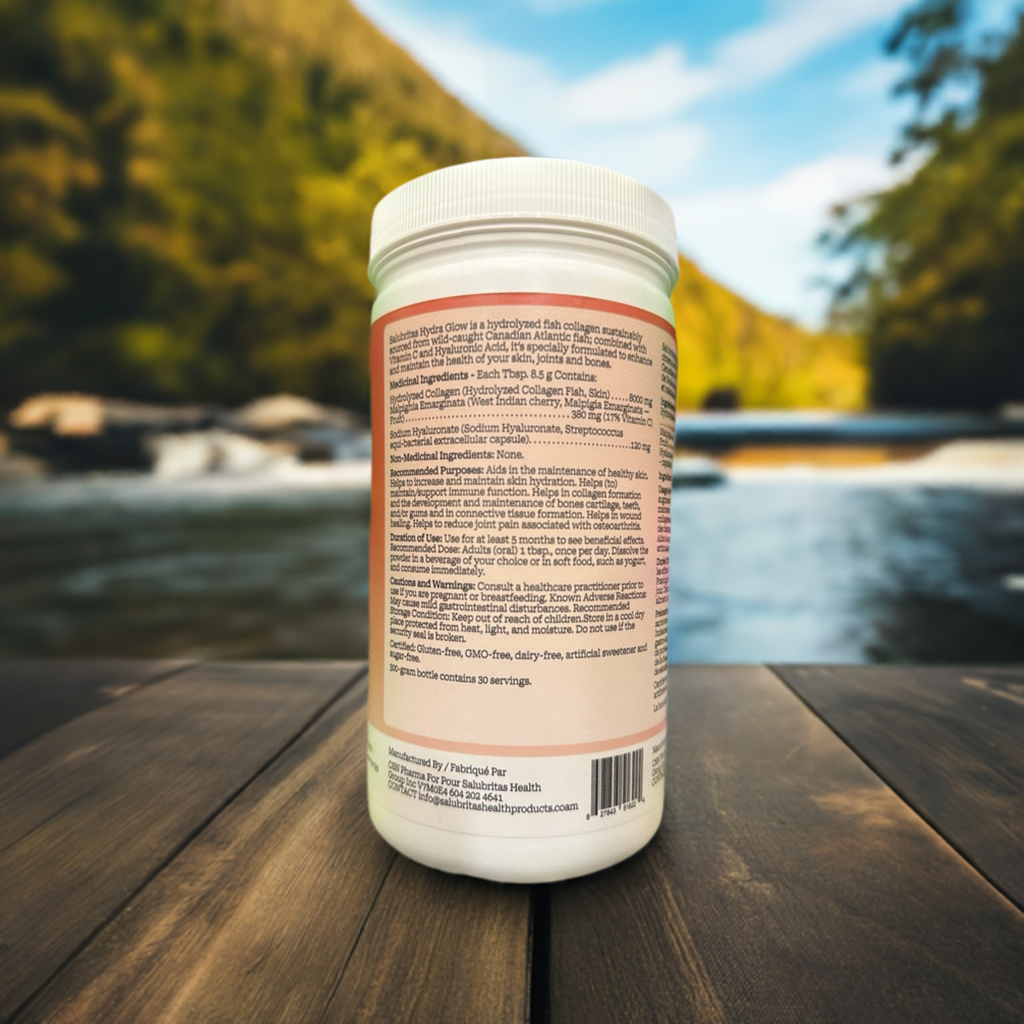 Discover the benefits of Hydra Glow, a premium supplement featuring Hydrolyzed Fish Collagen, Vitamin C, and Hyaluronic Acid. Sourced sustainably from wild-caught Canadian Atlantic Fish, Hydra Glow supports overall wellness for a vibrant and active lifestyle.